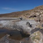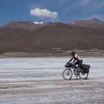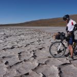 Marc, der Lebenskünstler aus Kanada, begleitete uns. Die ersten etwa 40 km gingen über den Salar. Meist war gut zu pedalieren, lediglich in Ufernähe wurde es etwas zäh, so dass teilweise auch geschoben werden musste. Wir folgten dann dem Salar noch eine Weile, um dann am südlichsten Zipfel nach Süden in Richtung Llica abzubiegen. Hier wurde es dann wieder etwas anspruchsvoller, weil es viele sandige Passagen gab, die ein im Sattel-sitzen-bleiben unmöglich machten.