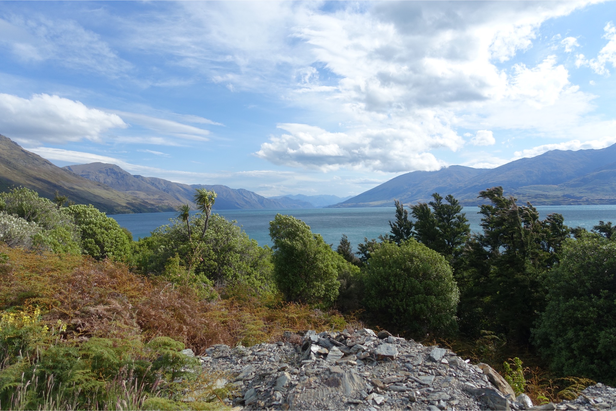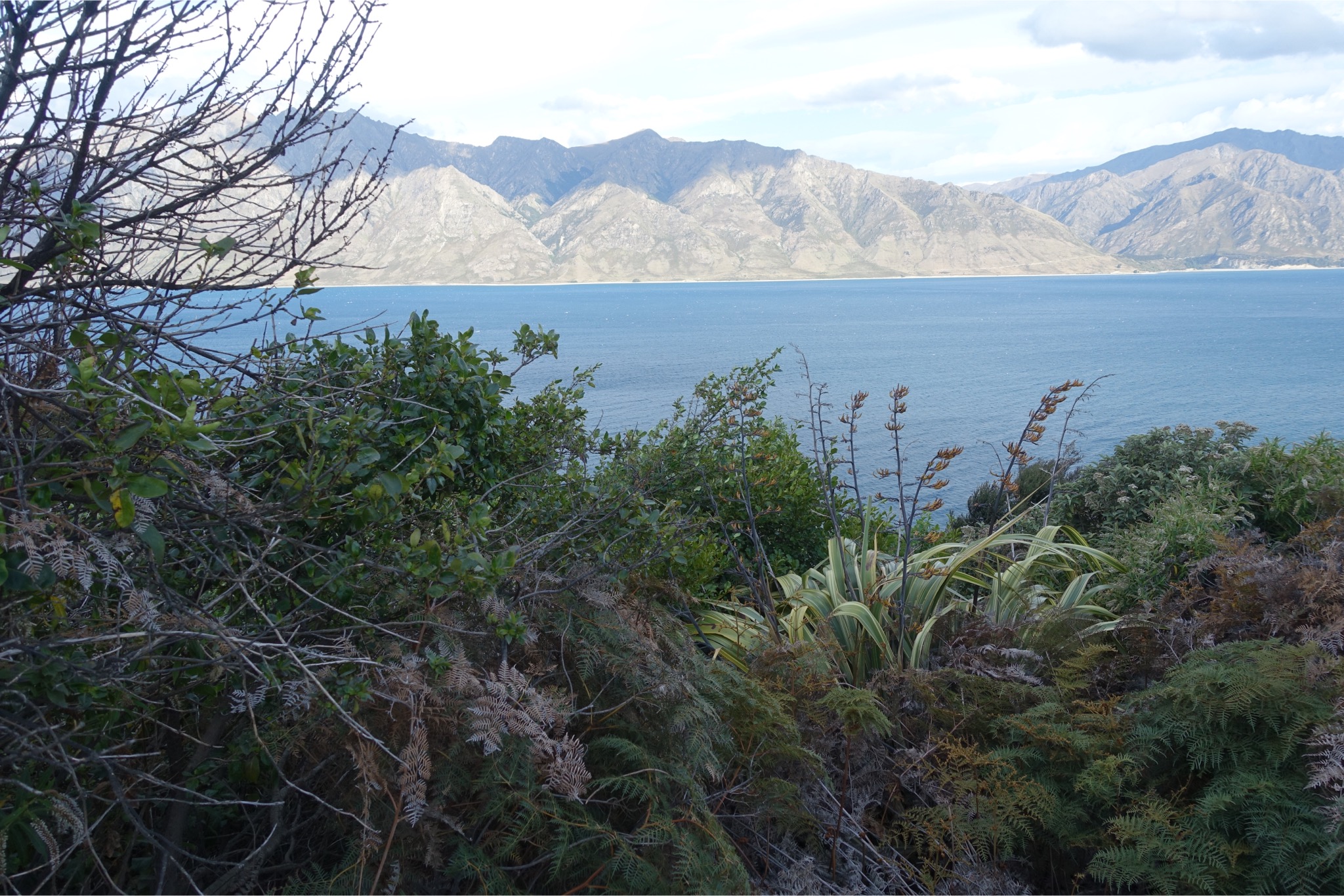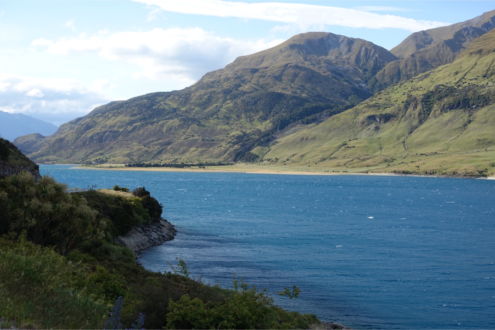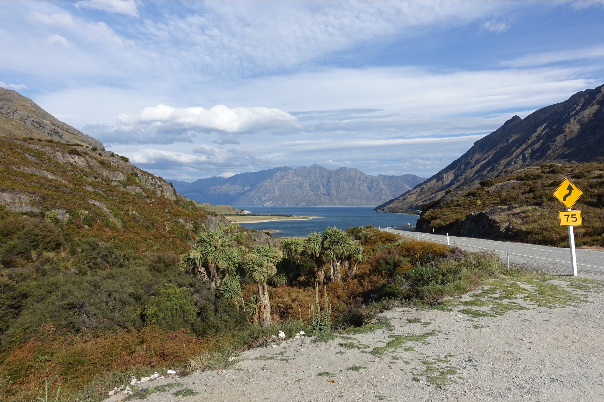 Heute stand eine richtig lange Etappe auf dem Programm. Um 5.00 Uhr klingelte das Handy, was aber gar nicht nötig war, die die Keas bereits wieder eingeflogen waren und ordentlich Radau machten. Um 6.30 ging’s auf’s Rad immer den Highway 6 entlang. Eigentlich sah der Himmel gar nicht so schlecht aus, aber nach 20 km fing es an zu regnen. Zum Glück regnete es heute nur einmal: von 7.30 bis 17.00 Uhr 😉. Daher blieben mir Blicke auf die nahen Gipfel aufgrund der extrem tief hängenden Wolken leider verwehrt. Unterwegs gab es an einer Lachsfarm ein leckeres Lachssandwich, ansonsten wurde aus der Radtasche von den Einkäufen vom Vortag gelebt. Die Temperaturen lagen die gesamte Zeit während des Regens bei 12 Grad. Seltsamerweise hat mich der Regen nicht sonderlich gejuckt. Ich habe es mir in meiner Regenjacke gemütlich gemacht und einen Kilometer nach dem anderen abgespult. Nach 118 km gab es die erste Möglichkeit nachzutanken und einen ordentlichen Teller Fisch & Chips zu verdrücken. Und es stellte sich die rhetorische Frage, weiter oder einkehren? Klar, weiter ging’s zu der größten Herausforderung des Tages: dem Haß-Pass. Obwohl es 60 km von dem letzten Ort bis zum Pass sein sollte, wollte es einfach nicht in die Höhe gehen. Erst bei Kilometer 175 ging es dann hinauf, dafür dann aber ordentlich. Auf 8 km von 60 auf 564m. Da kam richtig Freude in den Beinen auf. Aber danach kam die absolute Überraschung: nach 9,5 Stunden Regen hörte dieser auf einmal auf und die Temperaturen stiegen auf unglaubliche 23 Grad. Außerdem war das Tal in dem Milch und Honig fließt erreicht. Ich weiß, dass das mit den Superlativen immer so eine Sache ist, aber die Landschaft an den beiden Seen, an denen ich entlang fuhr, war das Schönste, was ich bisher je gesehen habe. Die Bilder können leider nur bedingt einen Eindruck vermitteln. Unterkunft habe ich nach unglaublichen 264 km und 3100 Hm in Wanaka auf einem Campingplatz gefunden. Damit war es die längste Tour, die ich bisher jemals gefahren bin. Ich werde morgen in Wanaka einen Tag pausieren, um mich zu erholen und die Sachen wieder komplett zu trocknen. Erstaunlicherweise habe ich während dieser extrem langen Etappe (14 Stunden) überhaupt keine Probleme bekommen. Ich führe es auf meinen strikten Ernährungsplan zurück. Der lautet soviel Essen und Trinken wie irgendwie geht.😀 Schade, dass die ersten Stunden vom Wetter her so schlecht waren. Trotzdem war es mit Sicherheit für diesen Urlaub die Königsetappe.
