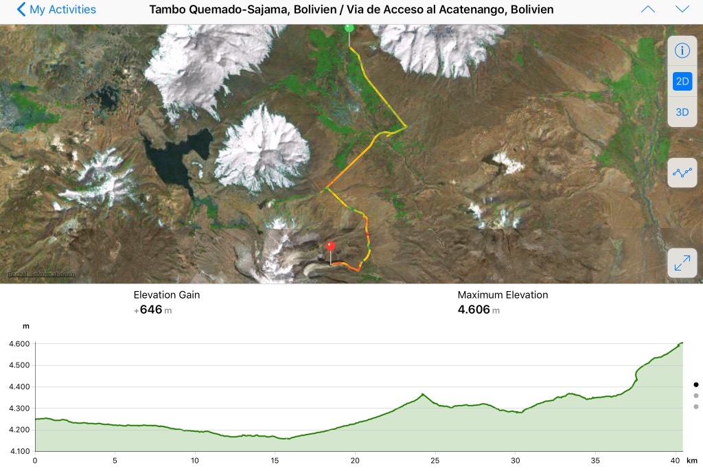Heute werde ich hoffentlich besser schlafen. Wegen der Erschöpfung. Und ich werde dann vermutlich vom Märchen „ Der Radler, der mit vollem Gepäck eine saumäßige Piste auf eine Höhe von 4800 m auf den Acatengo gefahren ist“ träumen. Aber vielleicht bin ich auch einfach nur schon zu alt.