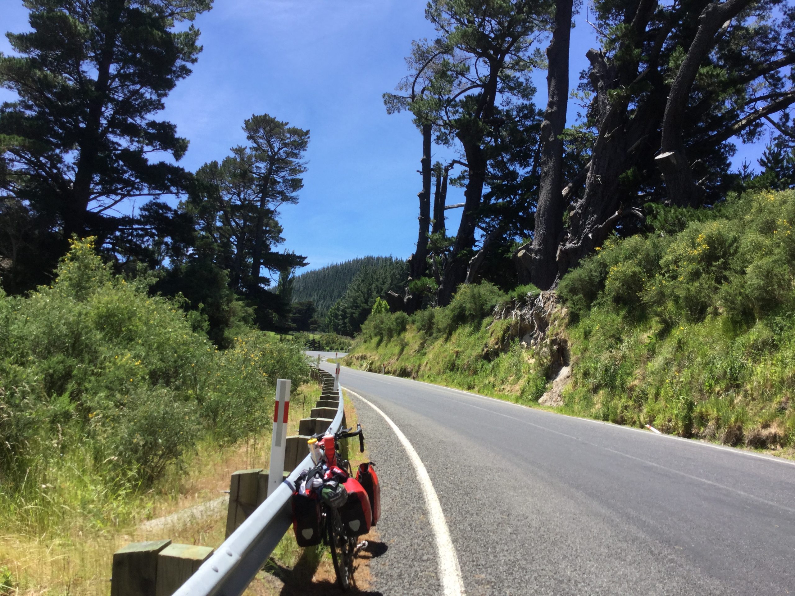 Heute stand dann eine weitere herausfordernde Etappe auf dem Plan. Nördlich raus von Taihape und dann immer Richtung Osten auf einer wenig befahrenen Straße in Richtung Napier. Einmal komplett über einen Bergrücken der Kaimana Mountains. Die mit Abstand schönste Strecke meines bisherigen Urlaubs. Und das bei Temperaturen bis 31 Grad. Problem bei der Strecke war mal wieder, dass es bis kurz vor Napier absolut nichts zum Einkaufen gibt. Aufgrund der hohen Temperaturen war klar, dass meine Wasservorräte nicht lange halten würde, und daher gab’s dann einen erfrischenden Schluck vermutlich aus dem Ngarurora-River, was mein Magen aber zum Glück problemlos mitgemacht hat. Die Strecke kann schon als anspruchsvoll beschrieben werden. Nachdem man sich auf knapp 900m hochgeschraubt hatte, ging es wieder auf 500 m runter und das Ganze noch zwei mal. Beim dritten Anstieg mit bis zu 18 % Steigung schoss das Wasser dann auch aus den letzten Poren. Letztendlich bin ich auf einem Campingplatz in Napier gelandet, wo sie satte 48 Dollar für eine Nacht haben wollen. Ist zwar schön gelegen, sauber und ein super Wifi Empfang, aber 48 Dollar sind entschieden Zuviel für einen Campingplatz. Abends gab es noch etwas Sightseeing in Napier, ein gutes Curry bei einem Thailänder und jetzt auf dem Zeltplatz ein Stück Käse und einen Chardonnay, der hier angebaut wird. Klasse.