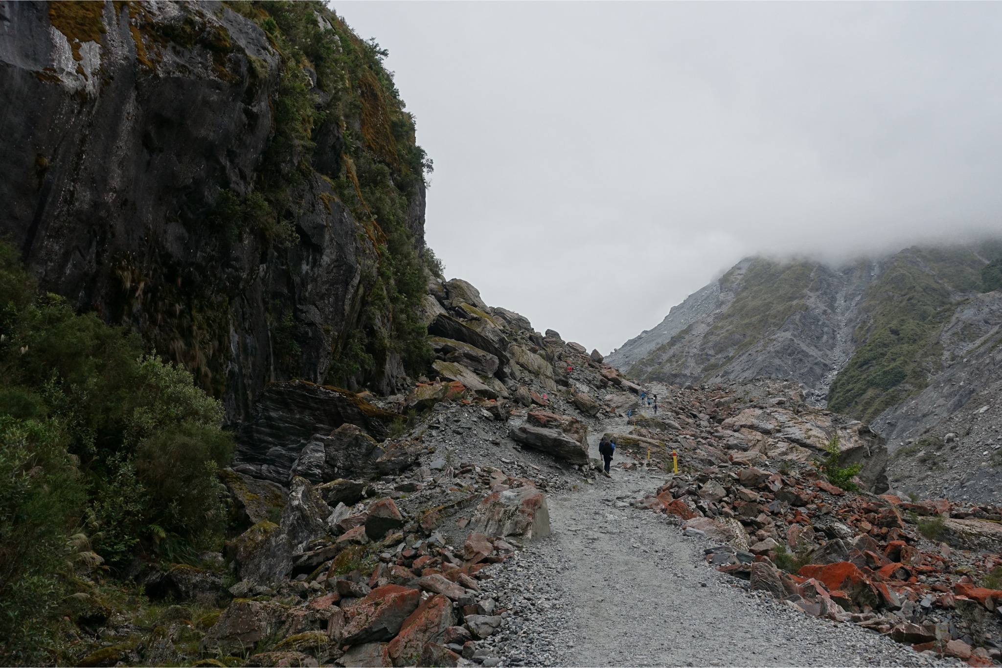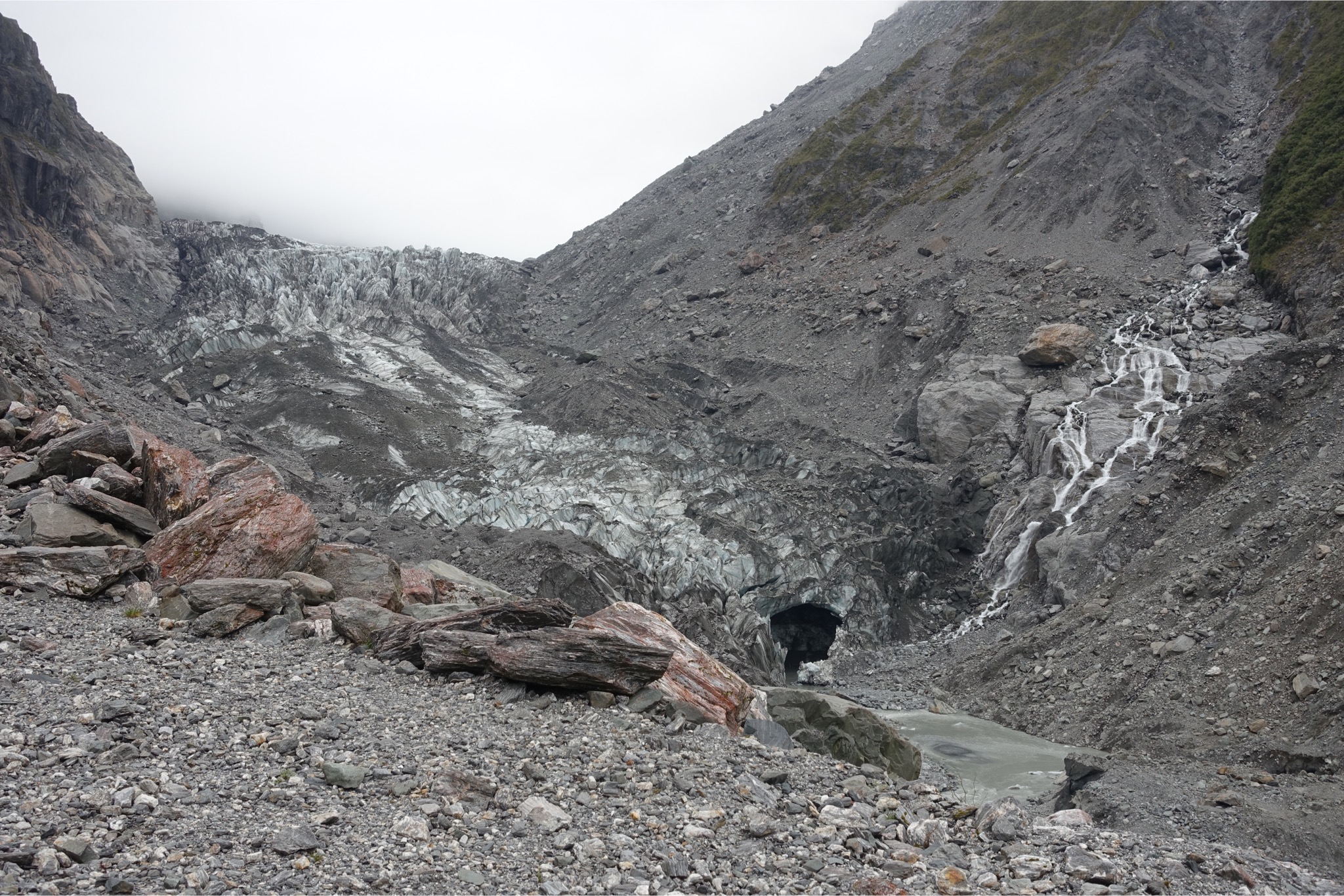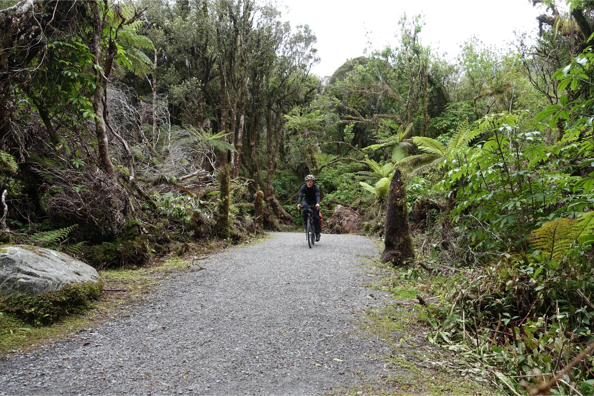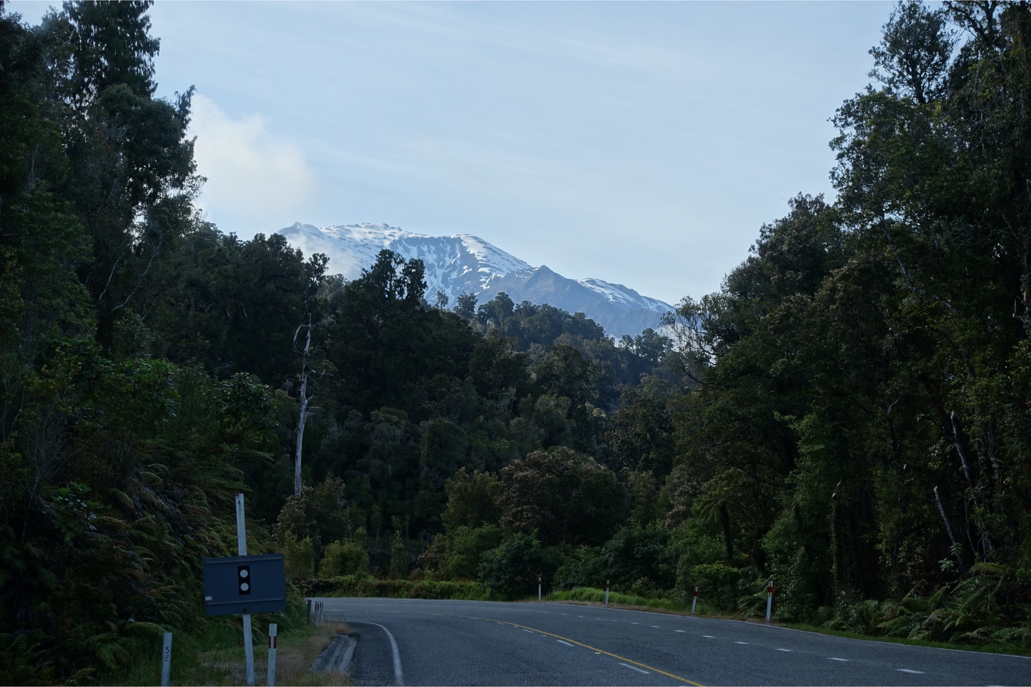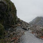 Heute gab es eine ganz ruhige Etappe. Um kurz vor acht ging es weiter auf Highway 6 Richtung Westen. Auf das vom Wirt versprochene Frühstück, das es ab halb acht geben sollte, war leider kein Verlass, so dass eine Banane und ein Schluck Cola vom Vortag reichen musste. Bis zur nächsten Station waren es aber auch nur 30 km. 5 km konnte ich einrollen, dann musste der Mount Hercule bezwungen werden, der sich aber dramatischer anhörte, als er eigentlich war. Bis auf rund 200 m schraubte sich die Straße, dann ging es wieder runter und dann flach weiter, bis nach Franz Josef, wo ich aber nur neue Vorräte aufnahm und dann weiter zum Fox Glacier. Das Profil wurde hier deutlich anspruchsvoller, aber nicht so schlimm wie erwartet. Drei mal bis auf ca. 400 m bei moderaten 7% ( maximal 13 %). In Fox Glacier war heute Schluß, da ich mir den Gletscher ansehen wollte und der nächste Stop erst nach über einhundert weiteren Kilometern gekommen wäre. Erwähnenswert ist noch, dass mir in Summe fünf weitere Radreisende entgegengekommen sind. Mit einem (natürlich Deutscher) hab ich mich etwas länger unterhalten. Der versucht grad eine Sinnkrise zu bewältigen und tourt jetzt erst drei Monate durch Neuseeland und dann drei Monate durch Australien. Der hatte neben Gepäcktaschen noch eine fetten Rucksack auf dem Rücken. Ich habe keine Ahnung, wie man damit radeln kann. Auffällig waren auch die vielen Helikopter. Alle paar Minuten ist so ein Vogel über den Gletscher geflogen mit zahlungswilligen Touristen. Die Gesellschaften müssen sich damit Wirklich eine goldene Nase verdienen.