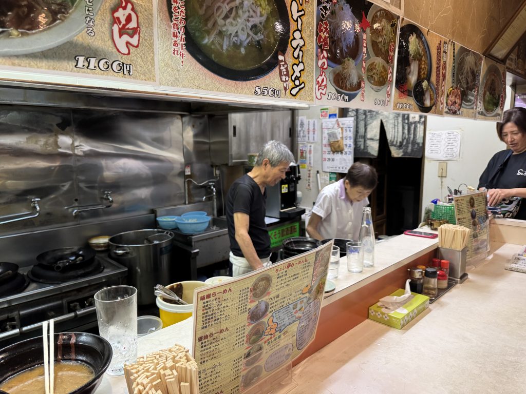 Mit Einbruch der Dunkelheit bin ich dann zurück in die Stadt. Nach etwas suchen wurde ich dann etwas außerhalb auf eine Ramen-Küche aufmerksam. Und das war dann mal wieder das Highlight des Tages. Zwei alte Leute, die den Laden schmissen. Verständigung war fast unmöglich, zum Glück gab es noch andere Gäste, so dass ich letztendlich meine Suppe löffeln konnte.