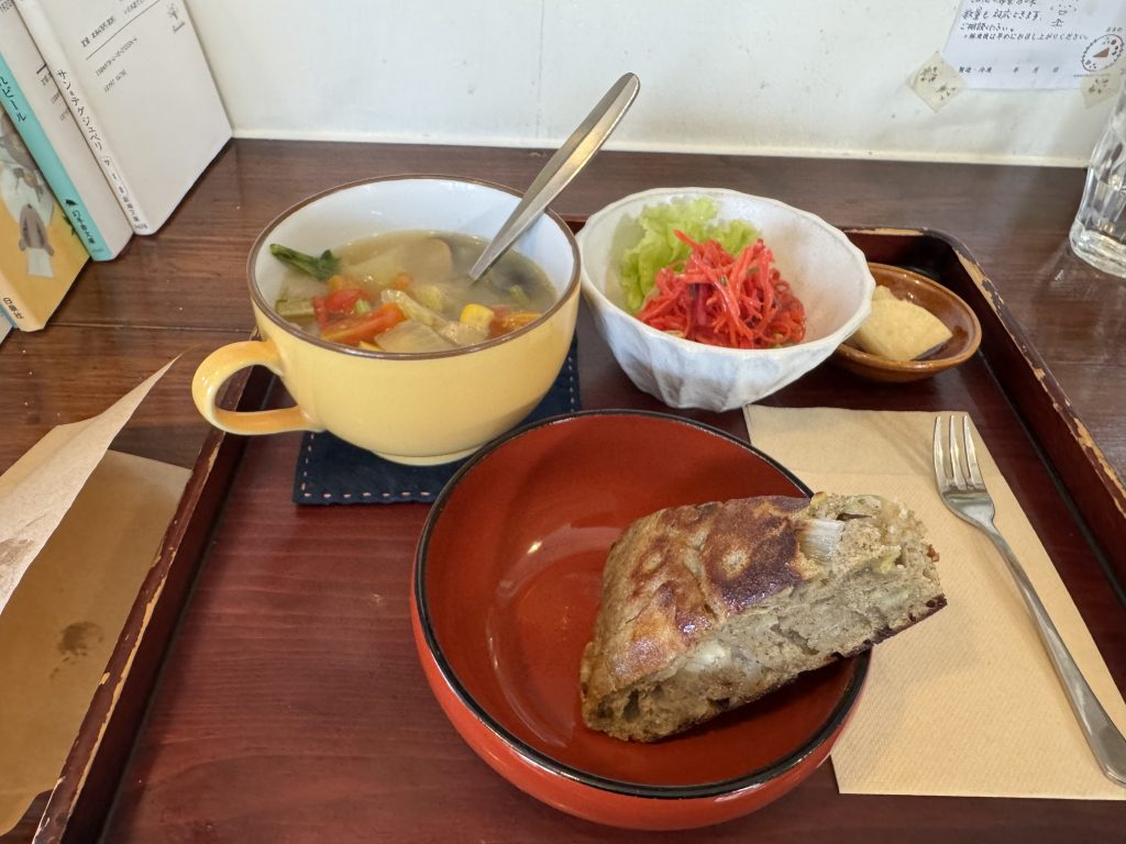 Ich habe dann eine Mittagssnack mit Suppe, Tee, einer Rat Brot und etwas Gemüse bekommen. Das war schonmal perfekt.