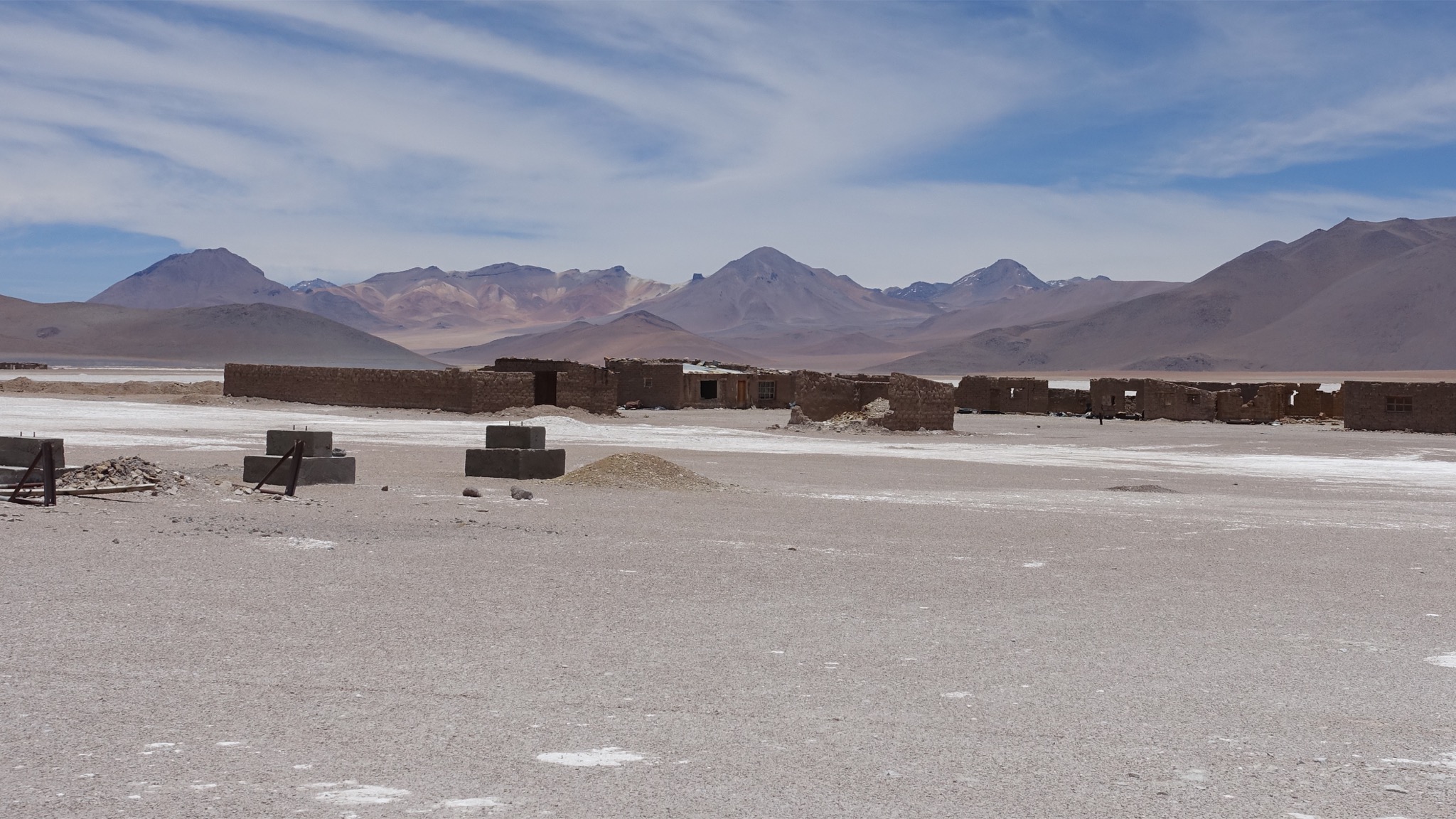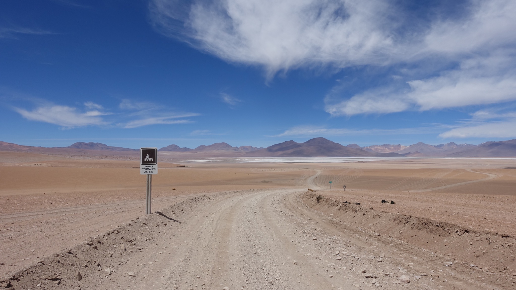 Die Tour heute ging eigentlich ganz gut los. Die Piste ließ sich die ersten 10 km gut fahren. Dann haben wir Richtung Westen zwei Salare passiert und ab dem Zeitpunkt wurde es richtig schwer, weil die Straße schlecht wurde und ein extrem starker Gegenwind auf das Gemüt schlug. Ich war nach der Etappe ziemlich kaputt, vermutlich weil ich etwas zu wenig unterwegs gegessen hab.