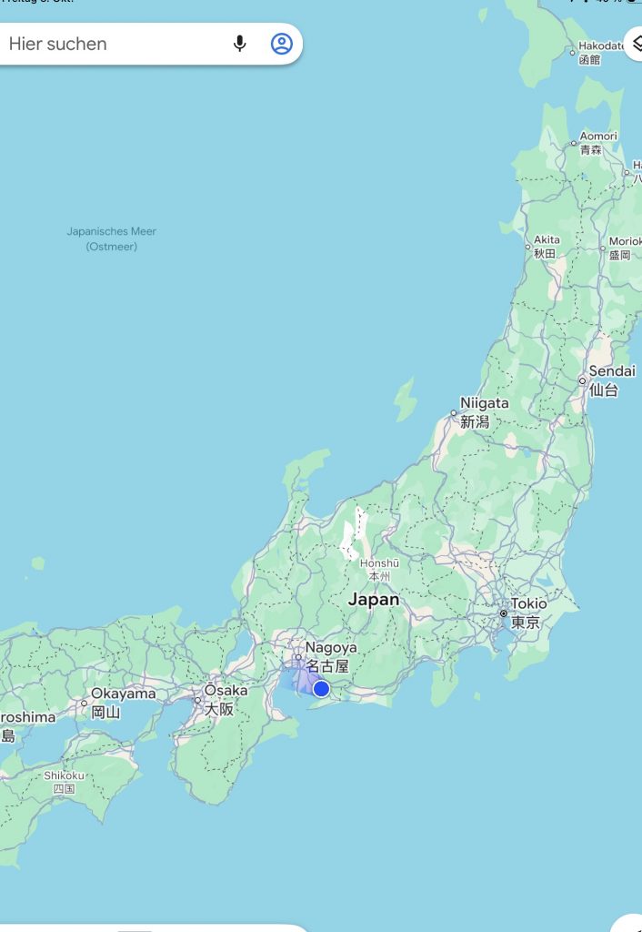 Jetzt bin ich am Meer südöstlich von Nagoya.