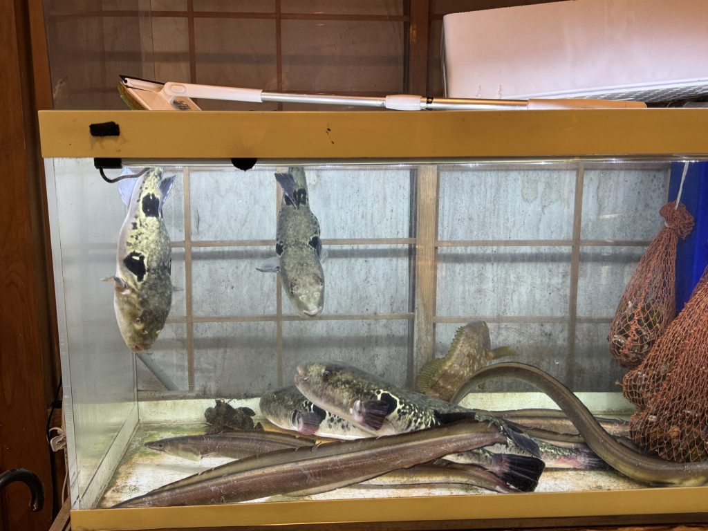 Wie ihr seht, hat das Restaurant Fugo in unterschiedlichsten Varianten zu bieten. Fugo ist japanischer Kugelfisch. Die Innereien sind hochgiftig und führen bei Verzehr zum Tod. Daher dürfen nur speziell geschulte und lizensierte Köche den Fisch verarbeiten. So sieht er vorher aus.