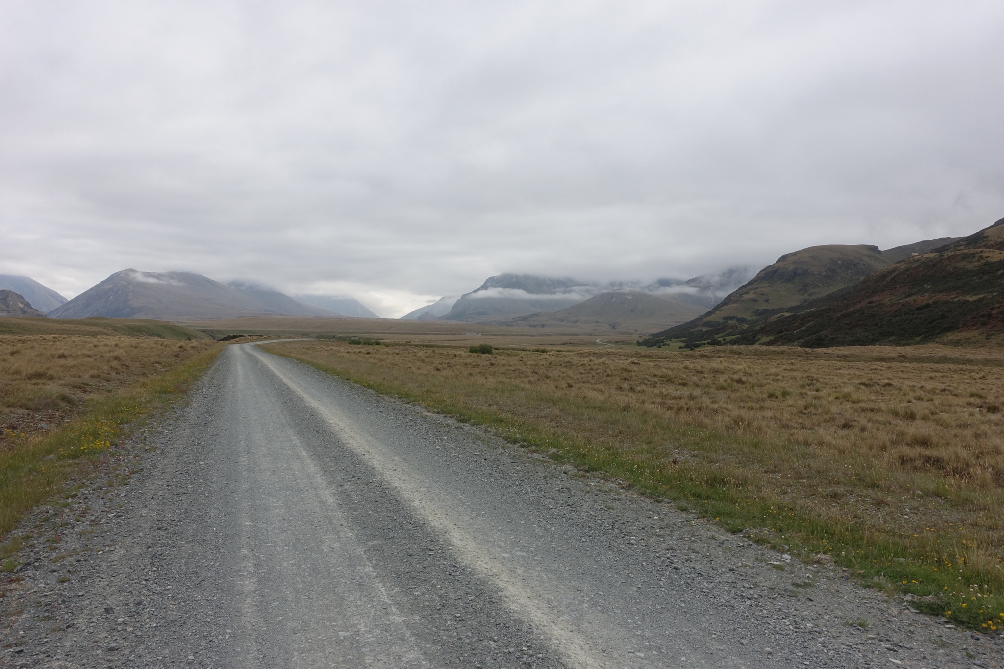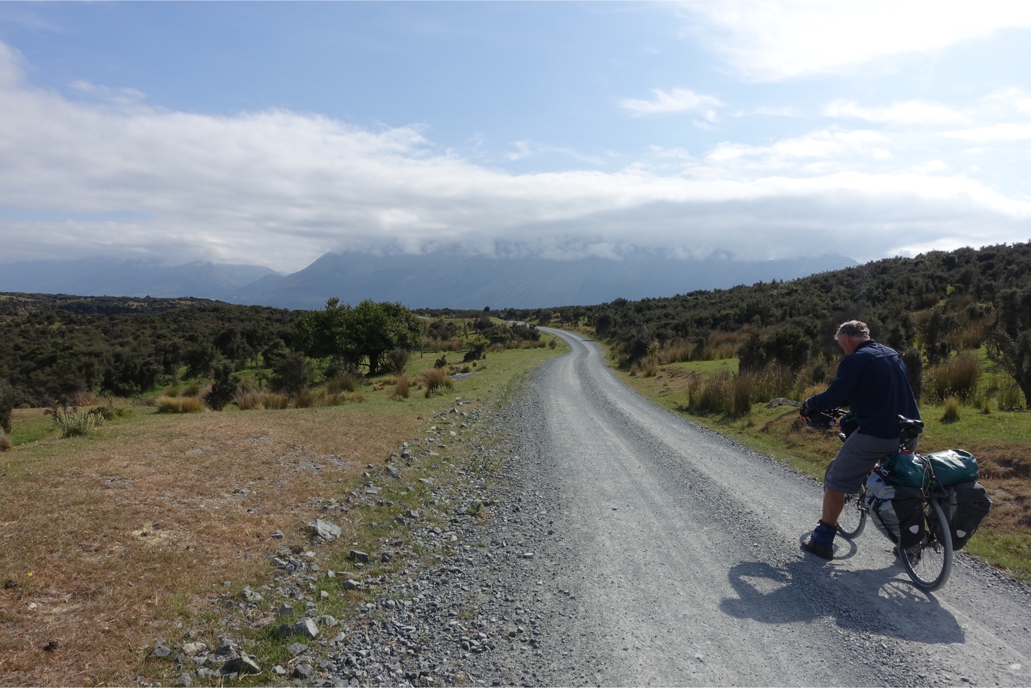 da heute nur rund 50 km auf dem Programm standen, habe ich morgens in Mossburn gebummelt und bin erst gegen 9.00 Uhr auf’s Rad. Nach wenigen Kilometern bin ich zu einem Kiwi (Matt) aufgefahren, der das gleiche Ziel hatte und dementsprechend sind wir zusammen gefahren. Die Schotterpiste war nicht sonderlich schlimm, außer, dass ein Haufen Kiwis an uns vorbeigebrettert sind und es dabei extrem staubig wurde.
