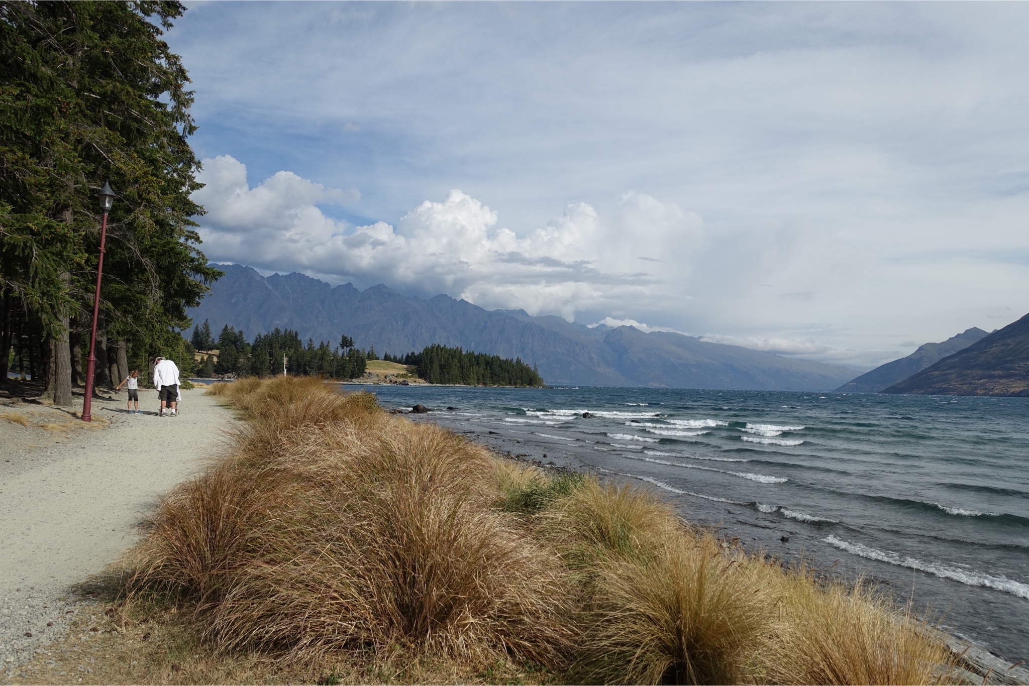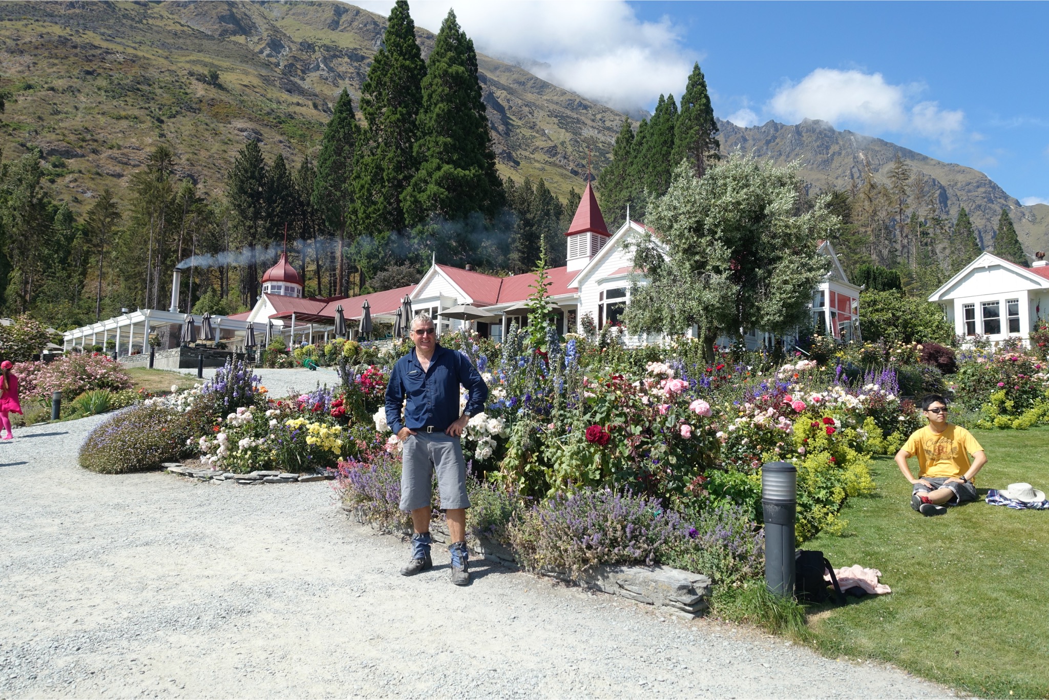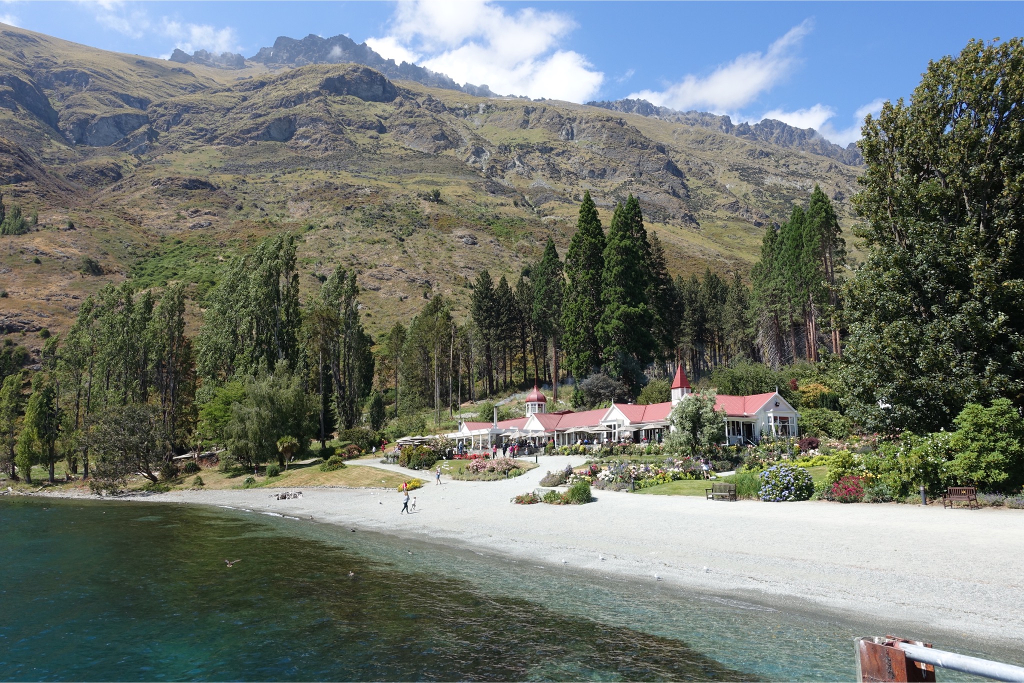 Am nächsten Morgen ging es dann auch das nächste Teilstück mit meinem bisherigen Weggefährten Matt weiter. Und die Landschaft war großartig. Über etwa 50 km ging es vom South Mavora Lake zum riesigen Lake Wakatipu zur Walter Peak Station, einem mit vielen Blumen verschönerten Örtchen, wo wir auf die Fähre warten konnten. Im Vergleich zu dem vorigen Tag gab es auf den gesamten 50 km nur 4 Autos, die uns zugestaubt haben. Entspannung pur…Nach etwa einer halben Stunde Überfahrt sind wir dann in Queenstown eingelaufen und dort wartete dann der Schock. Straßen voller Autos und Menschen! Nach den Stunden der Einsamkeit nicht auszuhalten. Also direkt mit dem Rad weiter nach Frankton, wo ich in einem später aber auch voll belegten Campingplatz gelandet bin. Hier werde ich die restlichen Tage bleiben. Ich war auch noch kurz beim Flughafen, wo ich erfreulicherweise am Samstag auch eine Box für mein Rad bekommen werde. Das erspart mir das Suchen in Queenstown.