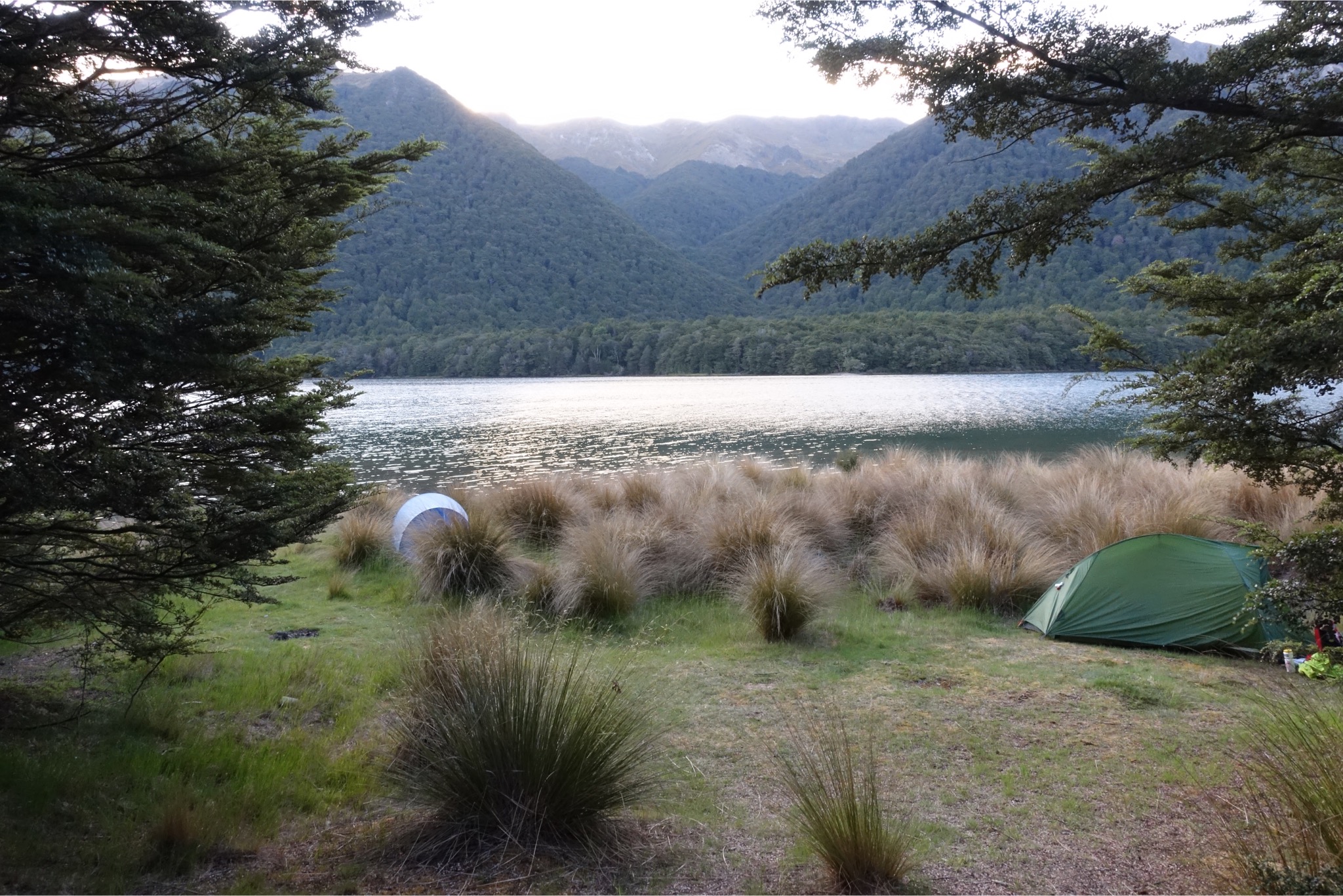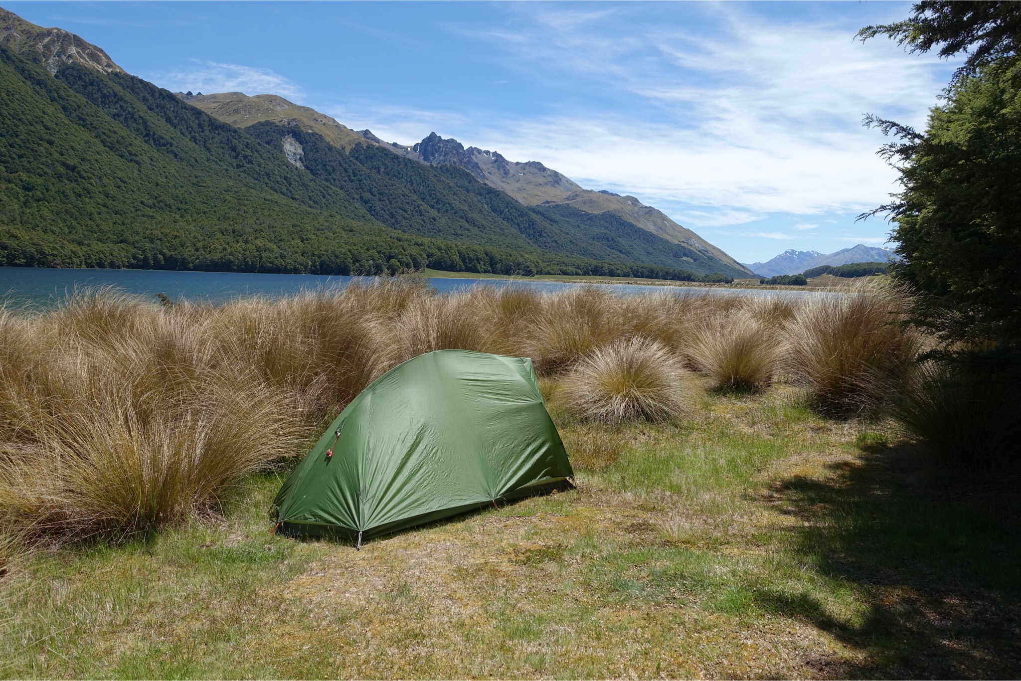 Und es sollte die richtige Wahl sein. Kurz nach unserer Ankunft wurde uns eine halbe gegrillte Regenbogenforelle, die eine Familie aus Tasmanien direkt im Mavora Lake gefangen hatte, für’s Abendessen vermacht. Und dazu gab’s noch zwei Gin Tonic!!!