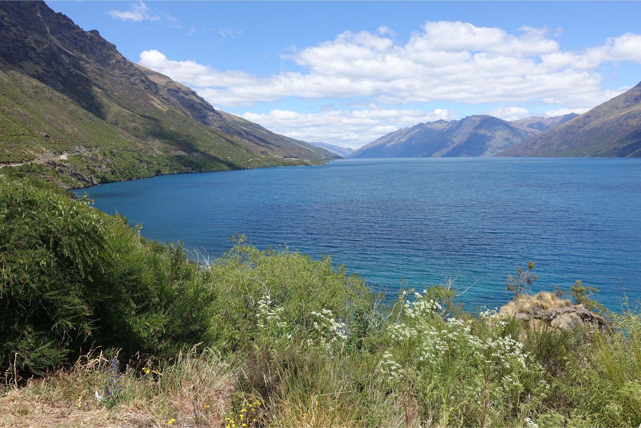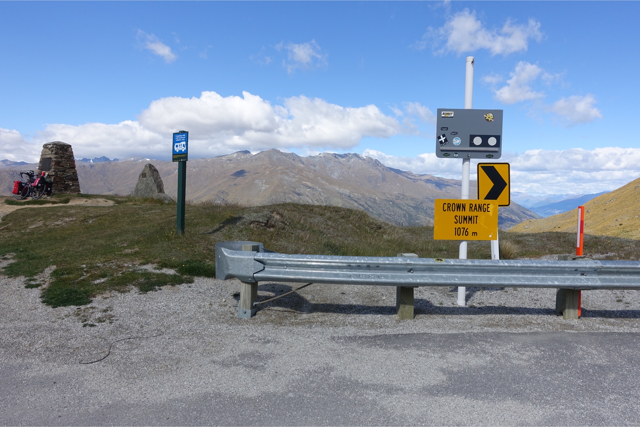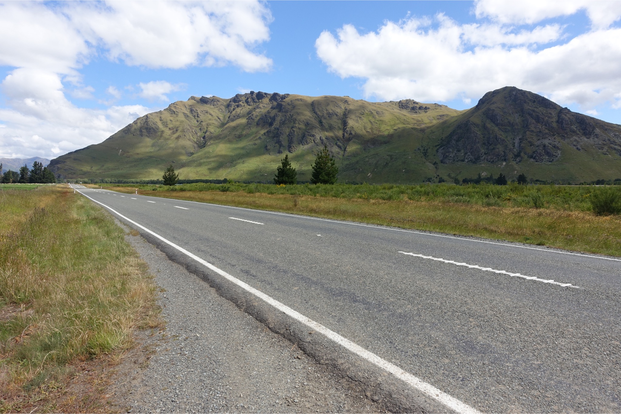 Naja, ein Towing vehicle war ich ja nicht. Also weiter. Mit der Erwartung eines extrem schwierigen Berges und dem Einverständnis, notfalls zu schieben, ging es weiter. Erst ab Kilometer 40 wurde es wirklich steil. 11 bis 15 %, aber nur für gut zwei Kilometer. Eigentlich schon fast wieder ein wenig enttäuschend. Im Vergleich zum Haß-Pass vor zwei Tagen war der Berg heute ein Kinderspiel. Belohnt wurde ich mit einer grandiosen Aussicht, als ich den Gipfel endlich erklommen habe. Viel anstrengender war heute der Wind. Der beständige Nordwind der letzten zwei Tage hatte auf Süd gedreht und blies den gesamten Tag kräftig von vorn. Landschaftlich war die Tour erste Sahne. Etwa 30 km durfte ich an einem riesigen, von Bergen umrahmten, See pedalieren. Mittags dann ein kurzer Stop in Kingston, wo ich in einem Café einen jungen Franzosen getroffen habe, der seit drei Tagen mit dem Rad in Neuseeland unterwegs war und Richtung Norden fuhr. Auch er hatte schon von der berüchtigten Straße vor Wanaka gehört. Ich habe ihn auf jeden Fall ermuntert, die Kletterei in Kauf zu nehmen . Erstaunlicherweise erzählte er mir, dass mein heutiges Etappenziel Mossburn nur noch 45 maximal 50 km entfernt wäre. Das war bei Kilometer 108. Große Freude, ich bin von 170 km ausgegangen. Das versprach ein früher Feierabend zu werden. Aber es sollte anders kommen. Ab Kilometer 124 wurde mein Tritt unrund, zumindest rechts. Meine erste Vemutung war, dass ich mal wieder eine Schraube locker habe, diesmal an der Pedalplatte. War aber nicht so, es war das Lager des Klickpedals. Glücklicherweise trat das Problem direkt vor dem Grundstück eines älteren Herren auf, der mir mit Werkzeug aushelfen konnte, aber ich konnte den Schaden leider nicht beheben. Auf meine Frage, wie weit es noch bis Mossburn sei, kam die Antwort, etwa 25 km. 124 +25 km sind 149, sollte zu schaffen sein, notfalls einbeinig. Zumal es wohl nur noch einen Big Hill geben würde. Den Big Hill gab es, der Rest stimmte nicht. Ich unterstelle mal, er meinte Meilen😉. Nach 149 km war ich noch weit von der Abzweigung entfernt, die nach Westen zu meinem Zielort führen sollte. Insgesamt waren es jetzt 177 km mit 1800 Hm, wobei die Schwierigkeit der heutigen Etappe wie schon erwähnt aus dem kräftigen Gegenwind bestand, der den ganzen Tag vorhielt. In Mossburn bin ich das erste Mal seit meinem Start in einem günstigen Hotel untergekommen, da hier auch nur noch die einzige Nahrungsquelle in Mossburn verfügbar war. Alles andere war schon geschlossen. Morgen wollte ich eigentlich zum Milford Sound durchstarten. Das sind noch einmal etwa 180 km. Aber ich muss sehen, dass ich das Pedal vorher repariert bekommen. Die letzten 120 sind dort wohl auch ziemlich einsam und 120 km einbeinig zu fahren sicher kein Spaß.