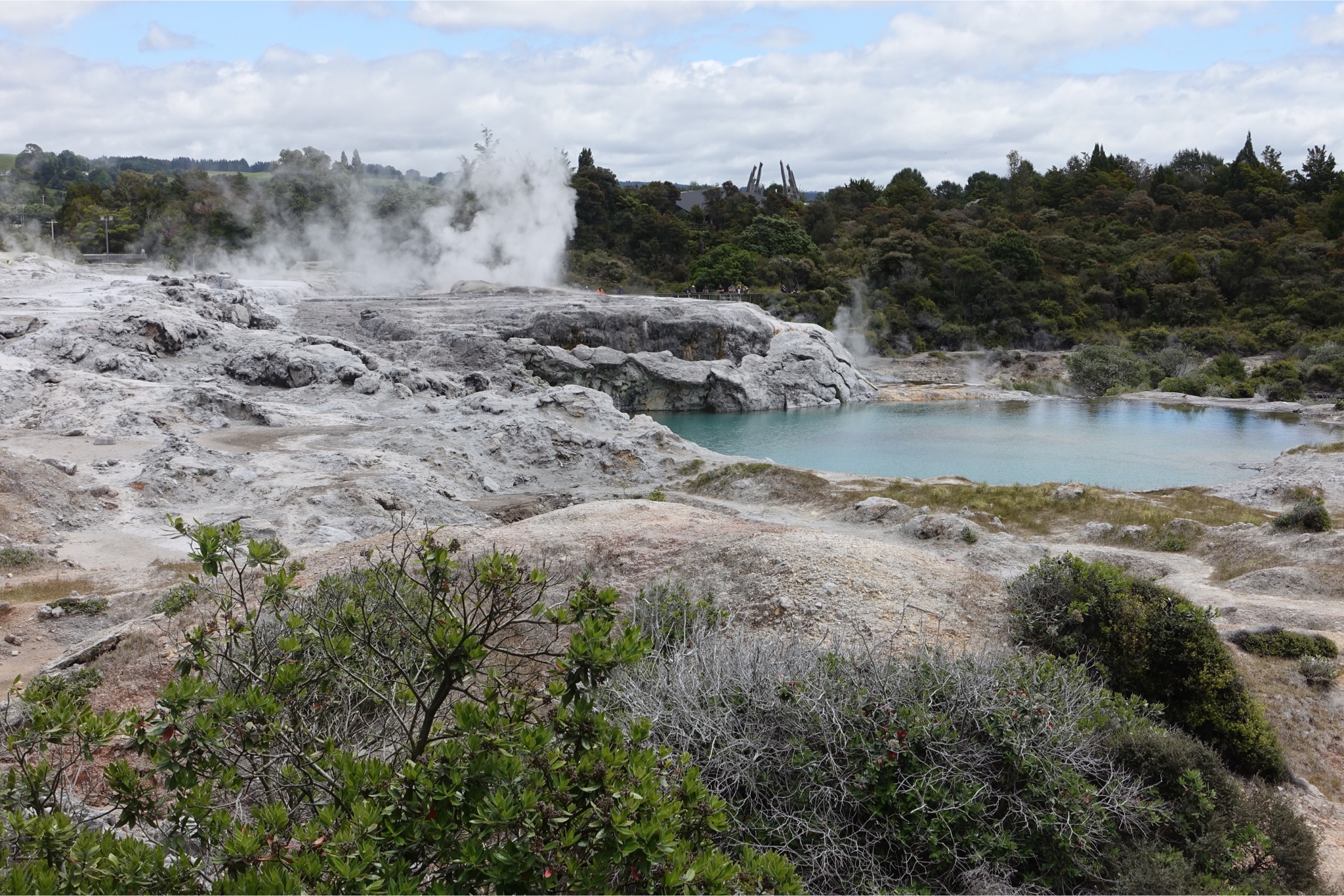 Am nächsten Tag ging es dann nach Rotorua. Dort finden sich Geysire und heiße Quellen und alles in Kombination kann man bei Besuch eines Maori-Dorfes bei Whakarewarew für 35NZD bewundern. Hier einige Fotos.